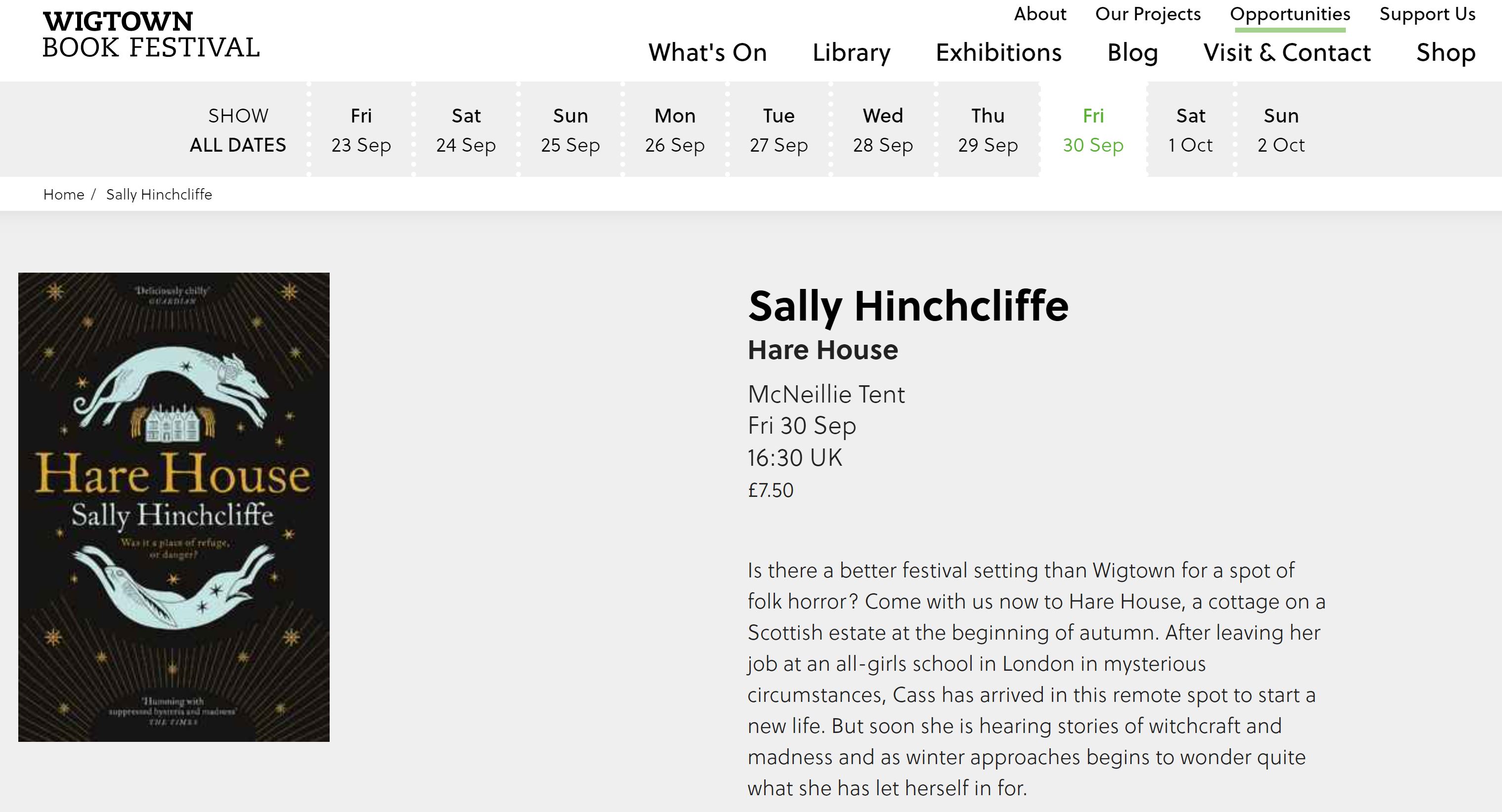 We’re blessed in Dumfries and Galloway to have the Wigtown Book Festival almost on our doorstep and I’m delighted to announce that this year I will be appearing as part of the official programme on Friday 30th September in the McNeillie Tent. It’s my first appearance at a literary festival so I’m looking forward to it and worrying about it in equal measure!